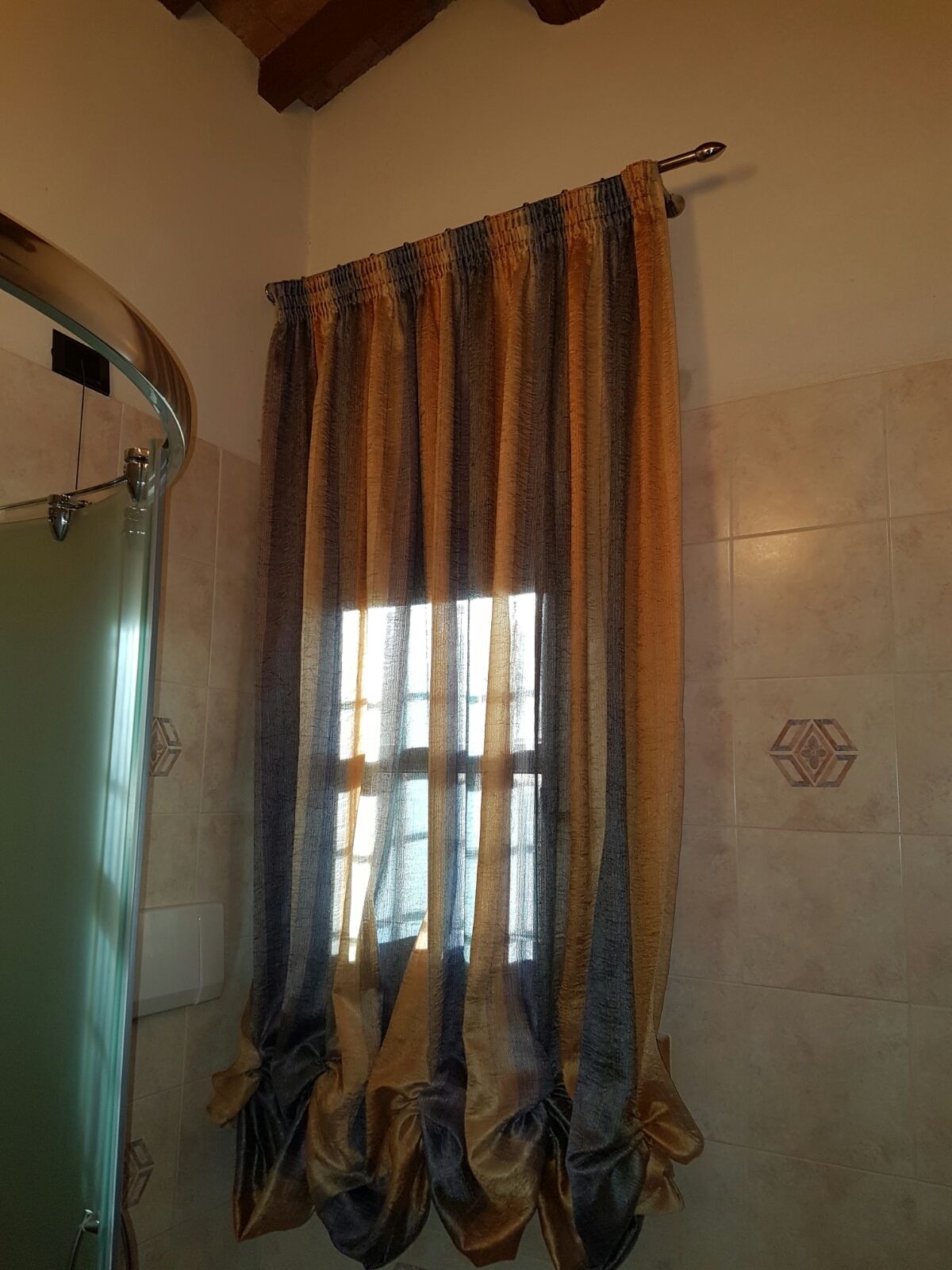 Problema risolto: richiedeteci una tenda a finto pacchetto la quale appare come tenda a pacchetto arricciato ma scorre orizzontalmente su binario o bastone come una “normale” tenda.